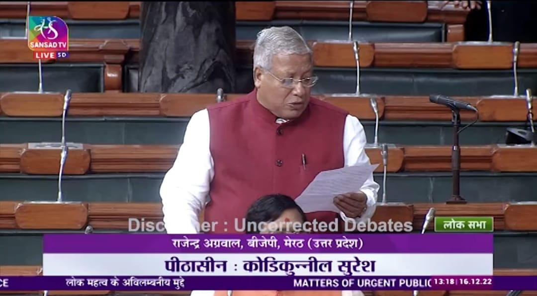 खबरwala24 न्यूज, हापुड़ : मेरठ-हापुड़ लोकसभा क्षेत्र के सांसद राजेंद्र अग्रवाल ने लोकसभा में शून्यकाल के दौरान चाइनीज मांझा अथवा इसी प्रकार के हानिकारक मांझे के भंडारण, बिक्री व उपयोग पर प्रभावी प्रतिबंध लगाने तथा इस प्रतिबंध का उल्लंघन करने वालों पर दंडात्मक कार्रवाई किए जाने की मांग की।