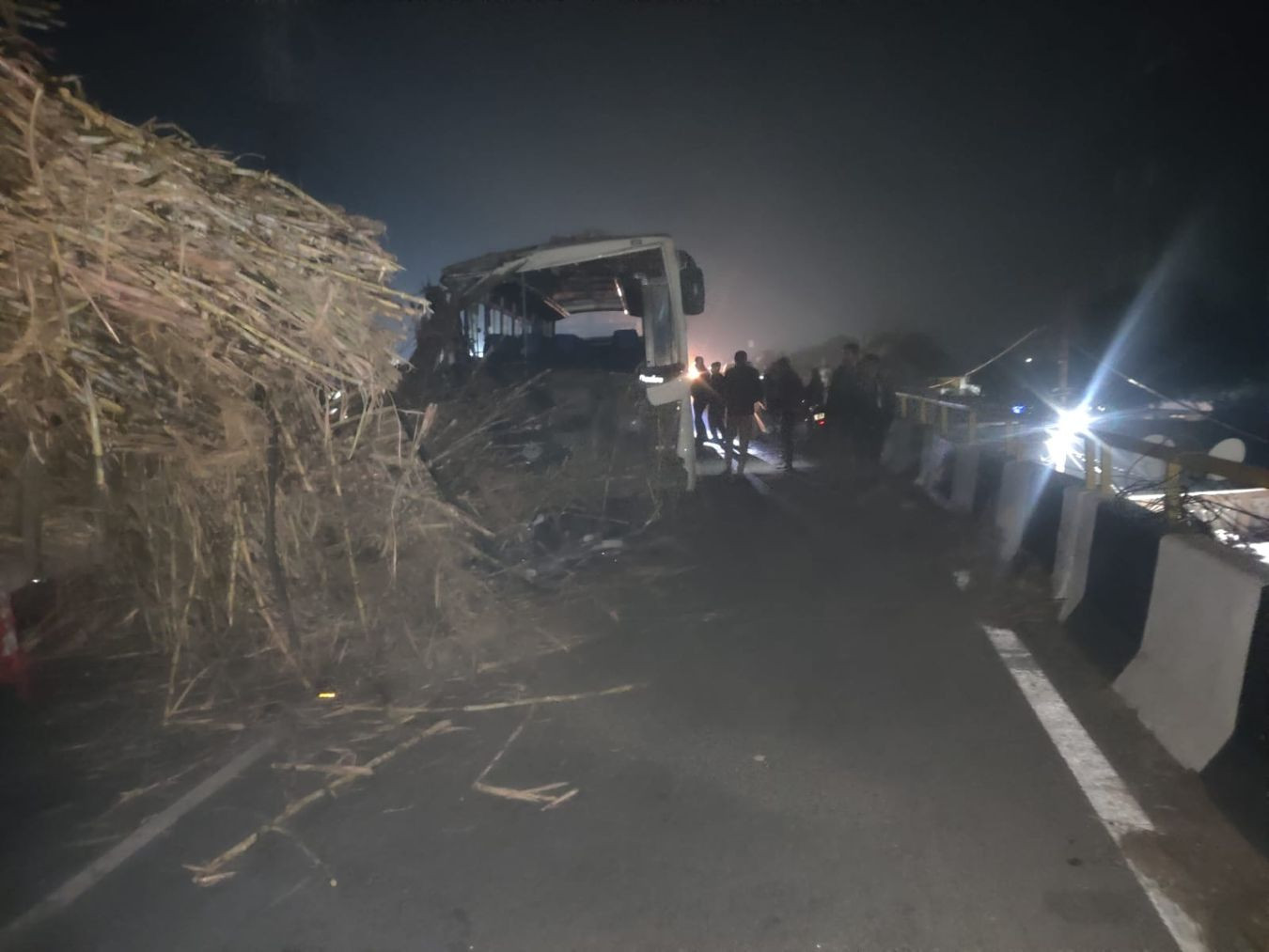 Khabarwala 24 News Hapur:थाना बाबूगढ़ क्षेत्र में एनएच-09 स्थित पुराने हाईवे पर गांव उपैड़ा फ्लाईओवर के पास शुक्रवार देर रात एक दर्दनाक सड़क हादसा हो गया। अनियंत्रित निजी बस ने गन्ने से लदी ट्रैक्टर-ट्राली को पीछे से जोरदार टक्कर मार दी। हादसे में बस चालक की मौत हो गई, जबकि छह यात्री गंभीर रूप से घायल हो गए।