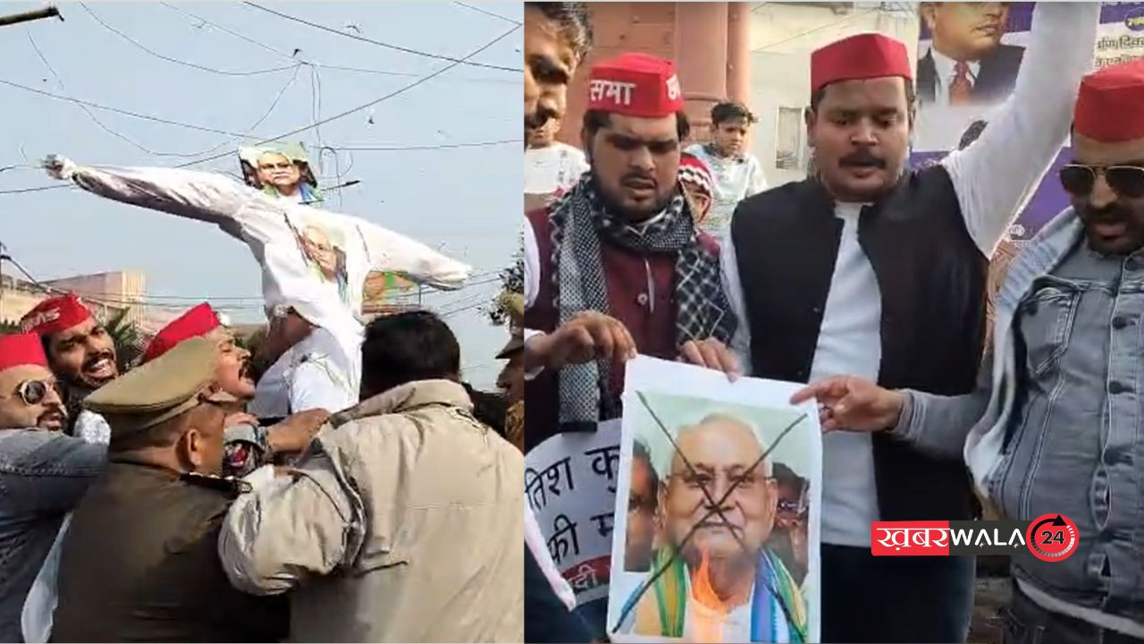 हापुड़, 22 दिसंबर (Khabarwala24)। उत्तर प्रदेश के जनपद हापुड़ में समाजवादी पार्टी (सपा) के छात्रसभा कार्यकर्ताओं ने बिहार के मुख्यमंत्री नीतीश कुमार के खिलाफ प्रदर्शन किया। यह विरोध नीतीश कुमार द्वारा एक मुस्लिम महिला डॉक्टर का हिजाब हटाने की घटना को लेकर था। कार्यकर्ताओं ने नीतीश कुमार का पुतला और फोटो जलाने की कोशिश की, लेकिन पुलिस ने पुतला छीन लिया। इसके बाद कार्यकर्ताओं ने फोटो जला दिया। इस दौरान पुलिस और कार्यकर्ताओं में धक्का-मुक्की हुई। बाद में सपा कार्यकर्ताओं ने पुलिस को ज्ञापन सौंपकर नीतीश कुमार के खिलाफ मुकदमा दर्ज करने की मांग की।