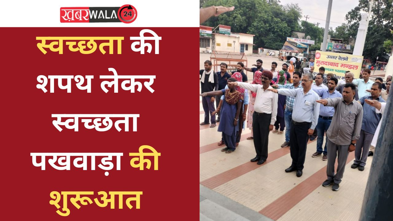 Railway News Khabarwala 24 News Hapur : रेलवे स्टेशन पर शनिवार को स्वच्छता पखवाड़ा की शुरुआत कर रेलकर्मियों ने स्वच्छता की शपथ ग्रहण कर हस्ताक्षर अभियान चलाया। इसके साथ ही स्वच्छ रेल स्वच्छ भारत के बैनर तले स्टेशन व रेलवे कालोनी में रैली निकालकर रेलकर्मियों को स्वच्छता के प्रति जागरूक किया।
