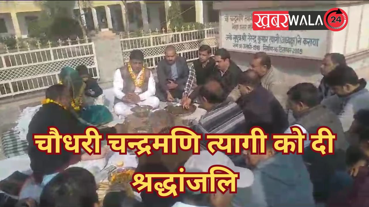 Khabarwala 24 News Hapur: Chandramani Tyagi चौधरी ताराचंद जनता डिग्री कॉलेज तगासराय में चौधरी ताराचंद जनता इंटर कॉलेज एवं डिग्री कॉलेज के संस्थापक, समाज सेवी स्वर्गीय चौधरी चन्द्रमणि त्यागी की चौदहवीं पुण्य तिथि पर उन्हें श्रद्धांजलि दी गई। कार्यक्रम में प्रातः हवन आयोजित किया गया।