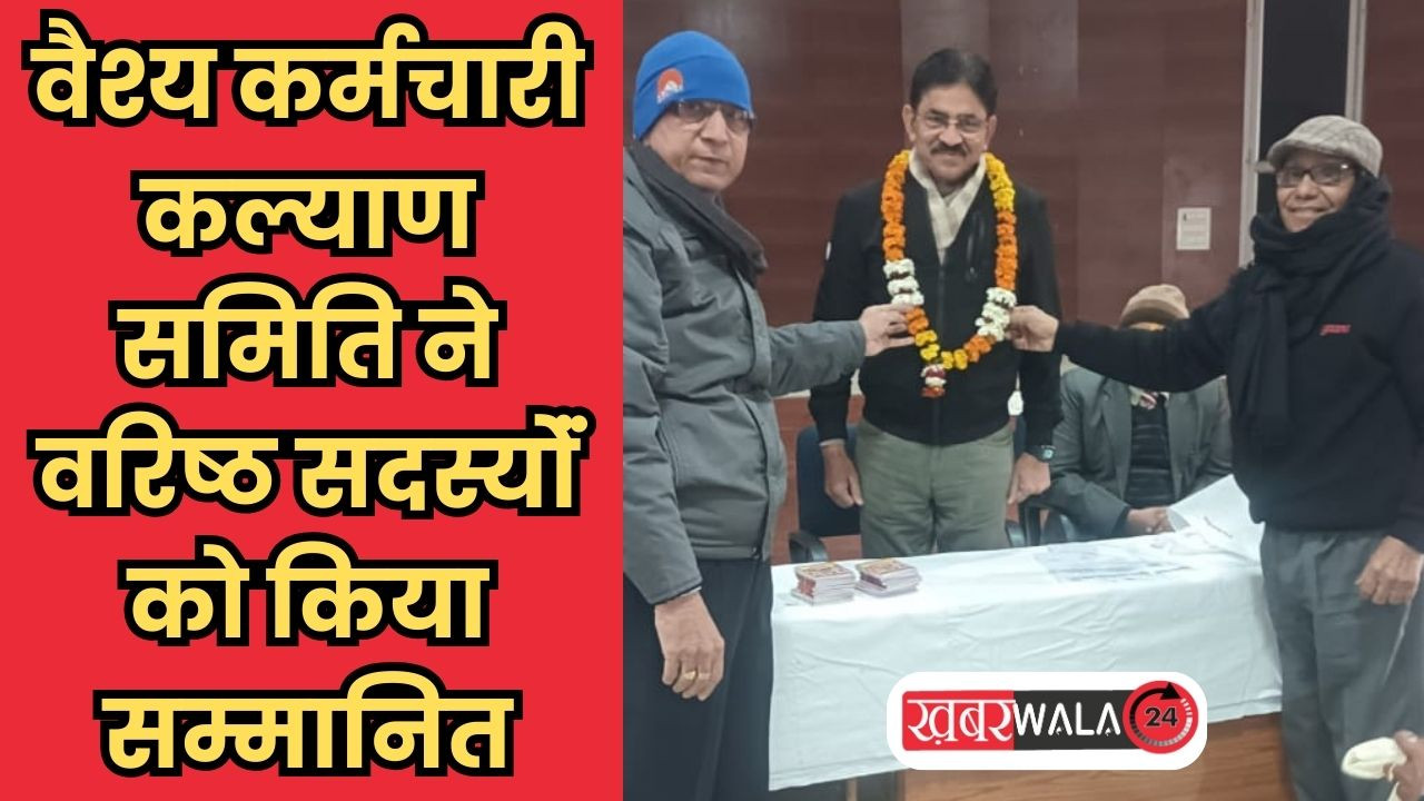 Khabarwala 24 News Hapur: Vaishya Employees Welfare Committee वैश्य कर्मचारी कल्याण समिति की साधारण सभा की बैठक एसएसवी डिग्री कॉलेज में आयोजित की गई । जिसमें 80 वर्ष के वरिष्ठ सदस्यों को शॉल और माला पहनकर सम्मानित किया गया । कार्यक्रम में सत्य प्रकाश गर्ग, बाबूराम सिंघल, मंगलसेन गुप्ता, रामकृष्ण गर्ग, रविंद्र कुमार गुप्ता को सम्मानित किया गया ।