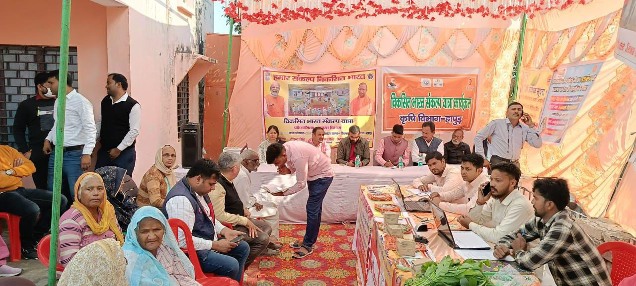 Khabarwala 24 News Hapur: सिंभावली विकास खंड की ग्राम पंचायत बुकलाना रविवार को विकसित भारत (Viksit Bharat)संकल्प यात्रा संदेश से गूंज उठा। इस ग्राम में वीडियो वैन से प्रधान मंत्री का विकसित भारत का संदेश कार्यक्रम के माध्यम से लोगों को सुनाया गया। गांव की गलियों मे भी विकसित भारत का संकल्प लोगों तक पहुंचाया गया।