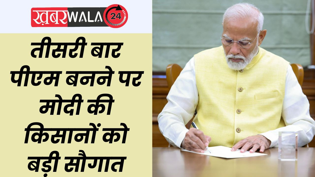 Khabarwala 24 News New Delhi: PM Kisan Samman Nidhi तीसरी बार लगातार प्रधानमंत्री पद की शपथ लेने के एक दिन बाद ही पीएम मोदी ने किसानों को लेकर बड़ा फैसला लिया है। पीएम मोदी ने आज यानि दस जून सोमवार को किसान सम्मान निधि की किस्त जारी करने को लेकर फाइल पर साइन किए हैं।