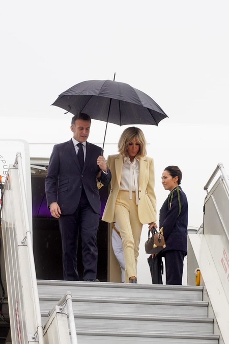नई दिल्ली, 18 फरवरी (khabarwala24)। फ्रांस के राष्ट्रपति इमैनुएल मैक्रों बुधवार को फर्स्ट लेडी ब्रिजिट मैक्रों के साथ नई दिल्ली पहुंचे। हवाई अड्डे पर उनका एमओएस केवी सिंह ने स्वागत किया, और रिमझिम बरसात के बीच लोक कलाकारों की प्रस्तुति का मैक्रों ने हाथ जोड़कर धन्यवाद दिया।